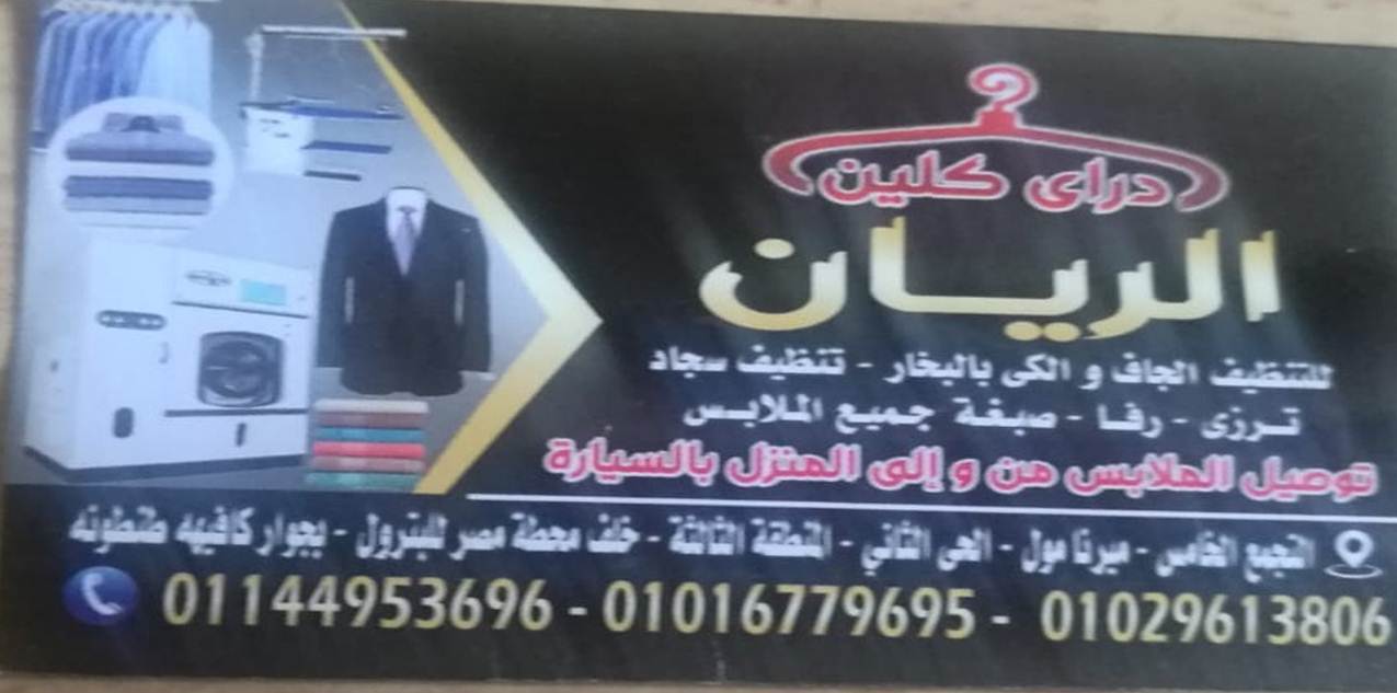 01016779695تنظيف جاف,كي بالبخار,غسيل الي ,تنظيف الستائر و المفروشات و فرش السيارات,تنظيف الجلود و الشمواه,تنظيف سجاد,ترزي,رفا,صبغه جميع الملابس ,ازاله البقع