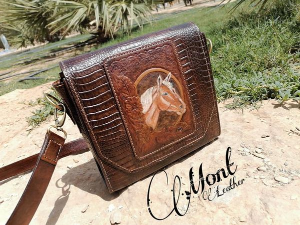 مع إضافة التقنيات المختلفة على خامة الجلد ( الدق – الحفر البارز – التلوين – الحرق – حفر الإسم على المنتج)